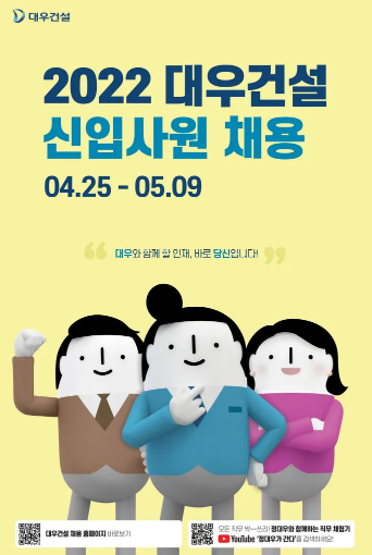 대우건설, 2022년 신입사원 90여명 공개채용...5월 9일까지