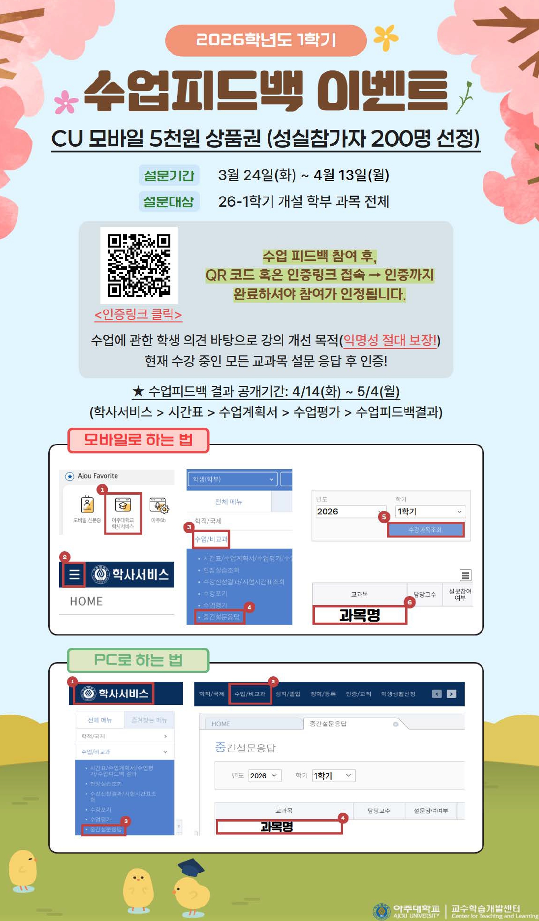 [기타] 2026학년도 1학기 수업피드백 이벤트 참여 안내