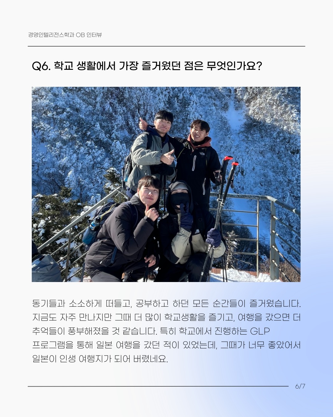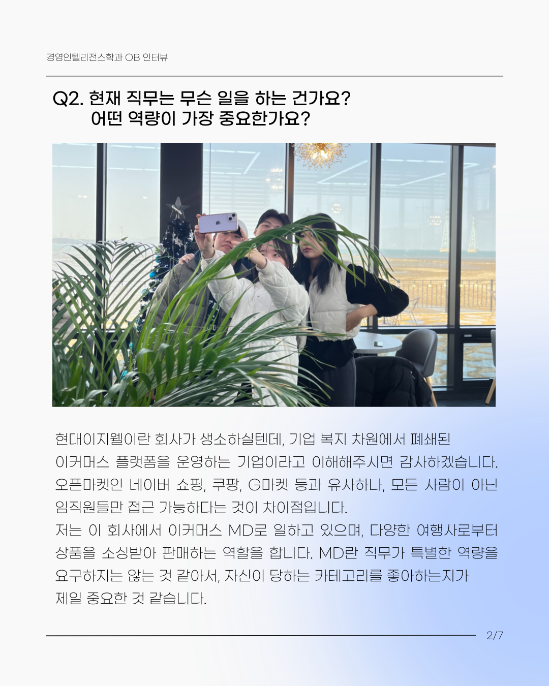 직무 역량은 물론, 대학 생활의 소중함에 대해서도 다시금 느낄 수 있었던 인터뷰였습니다.