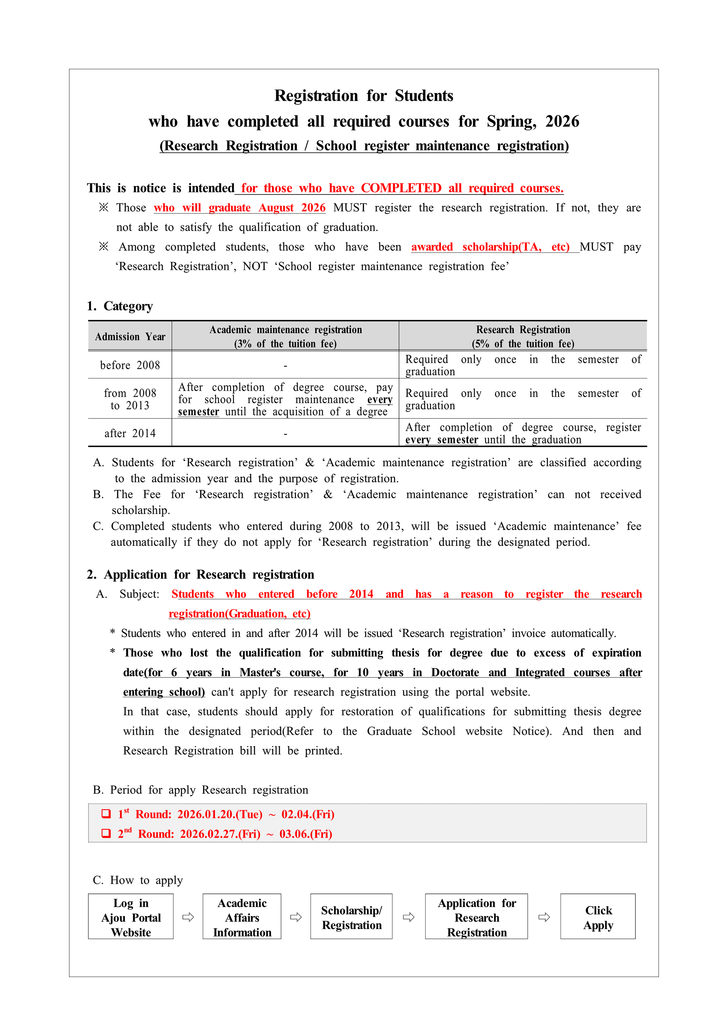 [Notice] Registration for Students who have completed all required courses for Spring, 2026